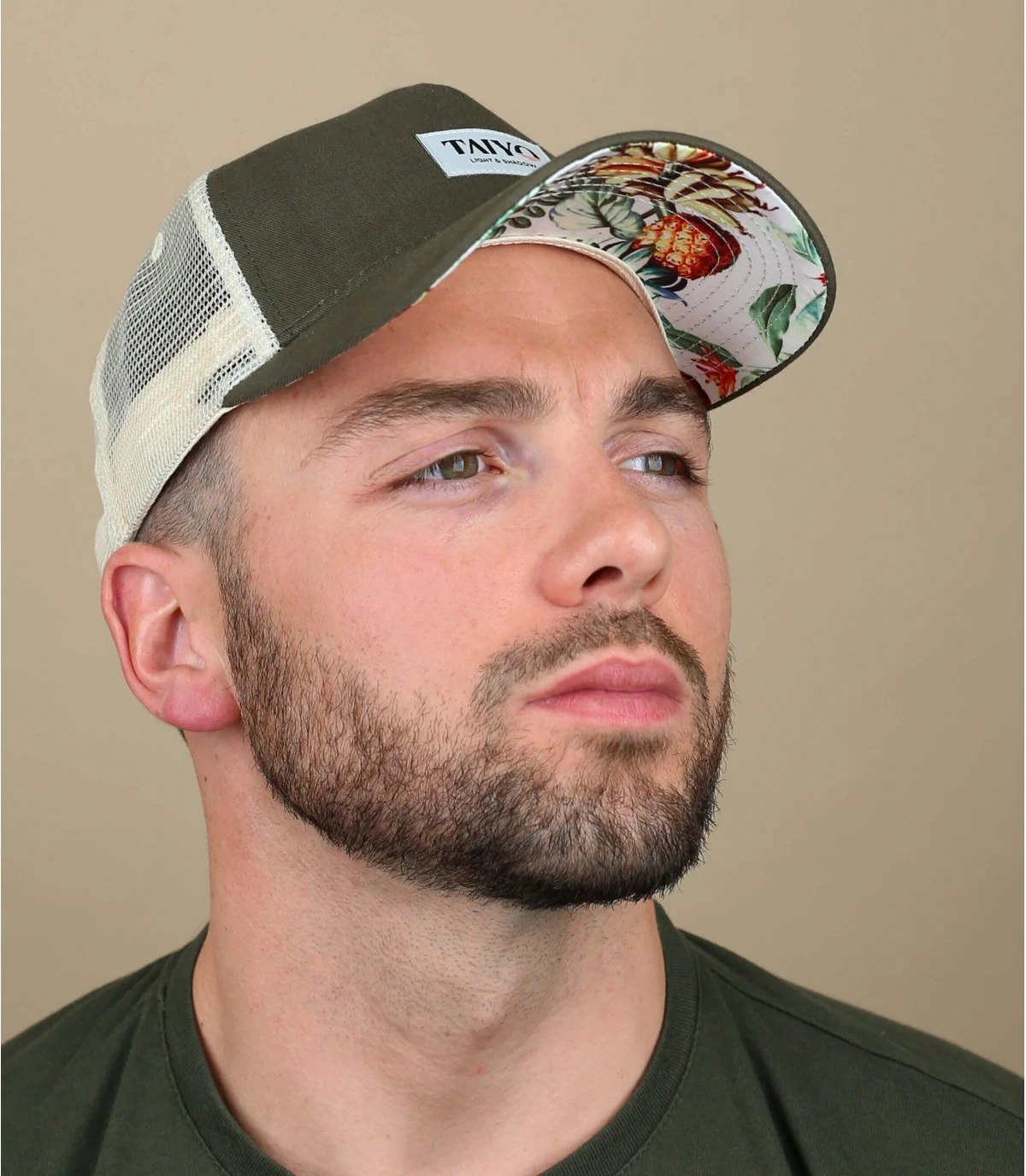 Cette trucker de la marque française Taiyo ne manque pas de nous surprendre avec son imprimé de bananes et d’ananas sous la visière. Ecoconçue qui plus est, de quoi illuminer vos journées même par mauvais temps.