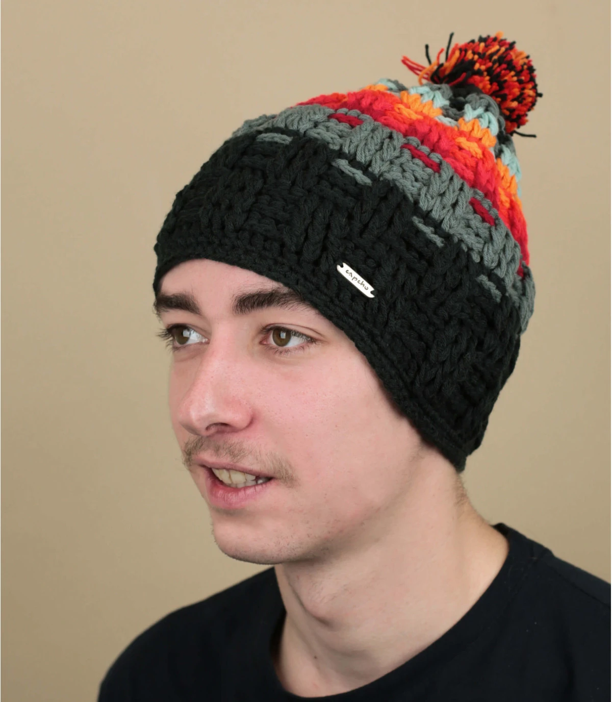 Fabriqué au Népal, ce bonnet à pompon orange vous donne de bonnes énergies avec ses couleurs orange et gris. Tricoté à la main, il est doublé en polaire au niveau des oreilles pour vous tenir chaud.