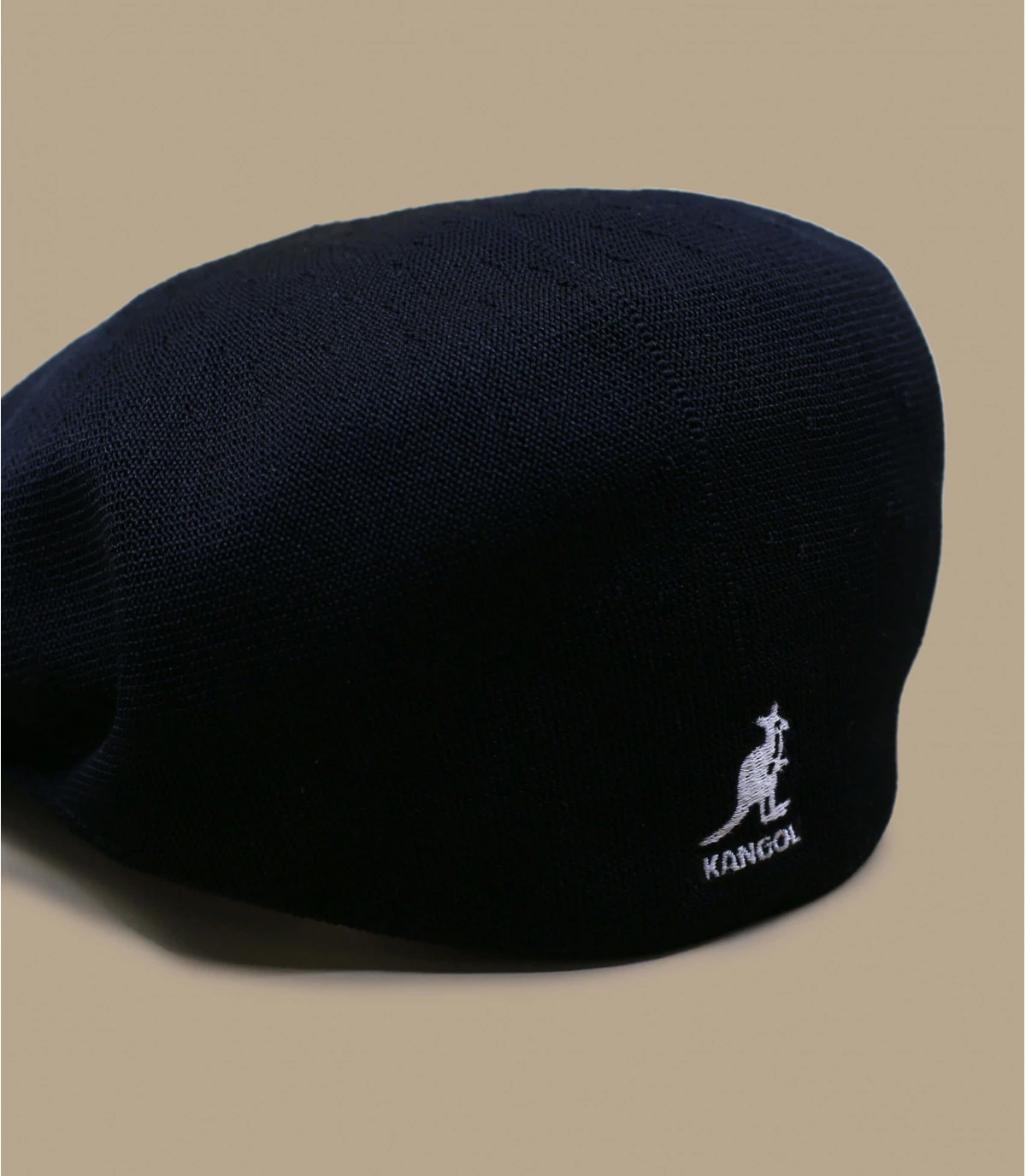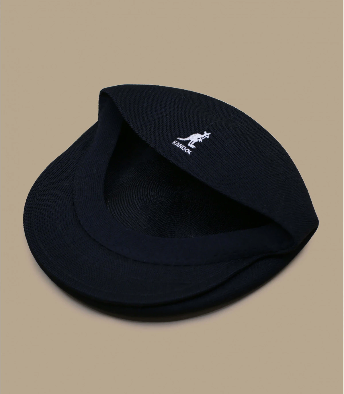 Béret casquette noir avec visière. Logo Kangol cousu à l’arrière. Bande antisueur 100% nylon.