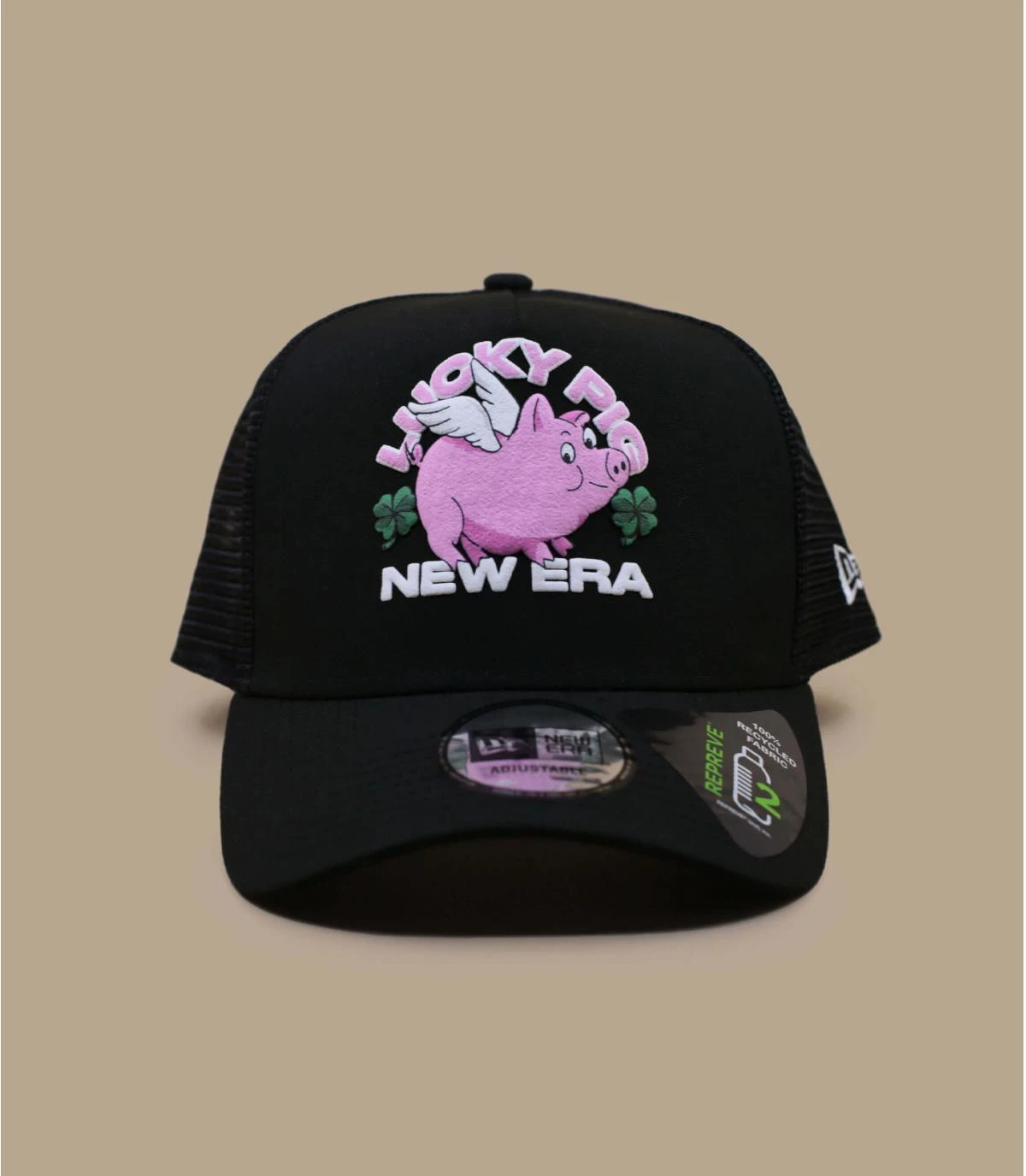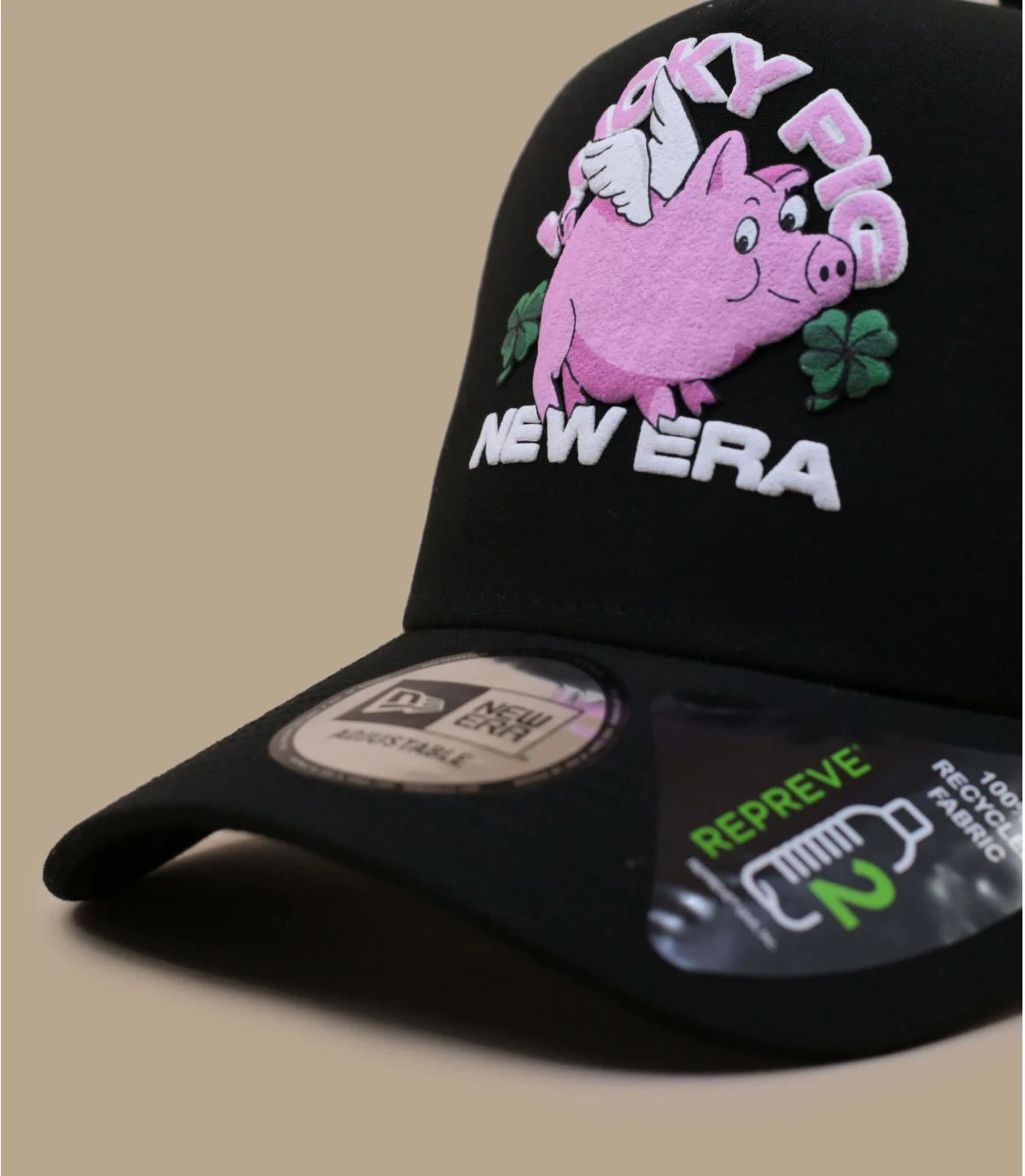 Voici la Trucker Sign Lucky Pig de New Era. Parfaite pour l’été, cette casquette noire présente une forme trucker avec une visière courbée, un filet respirant et un logo cochon accrocheur. Ne manquez pas votre chance d’ajouter cet accessoire à votre garde-robe.