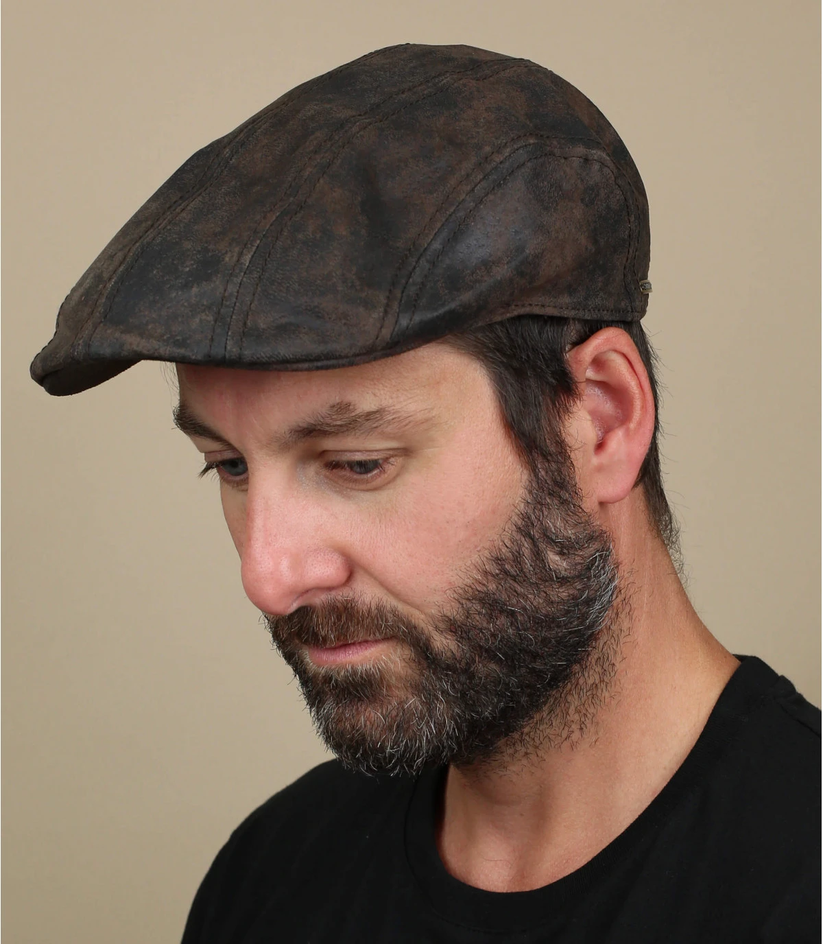 Casquette plate Stetson en cuir marron. Une casquette qui ne vous quittera plus cet automne.